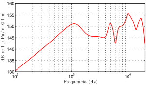 Diese Frequenzgrafik ist für einer Spannung von 1 V (rms). Für 20 V (rms) addieren Sie ~26dB um den Schallpegel zu berechnen.